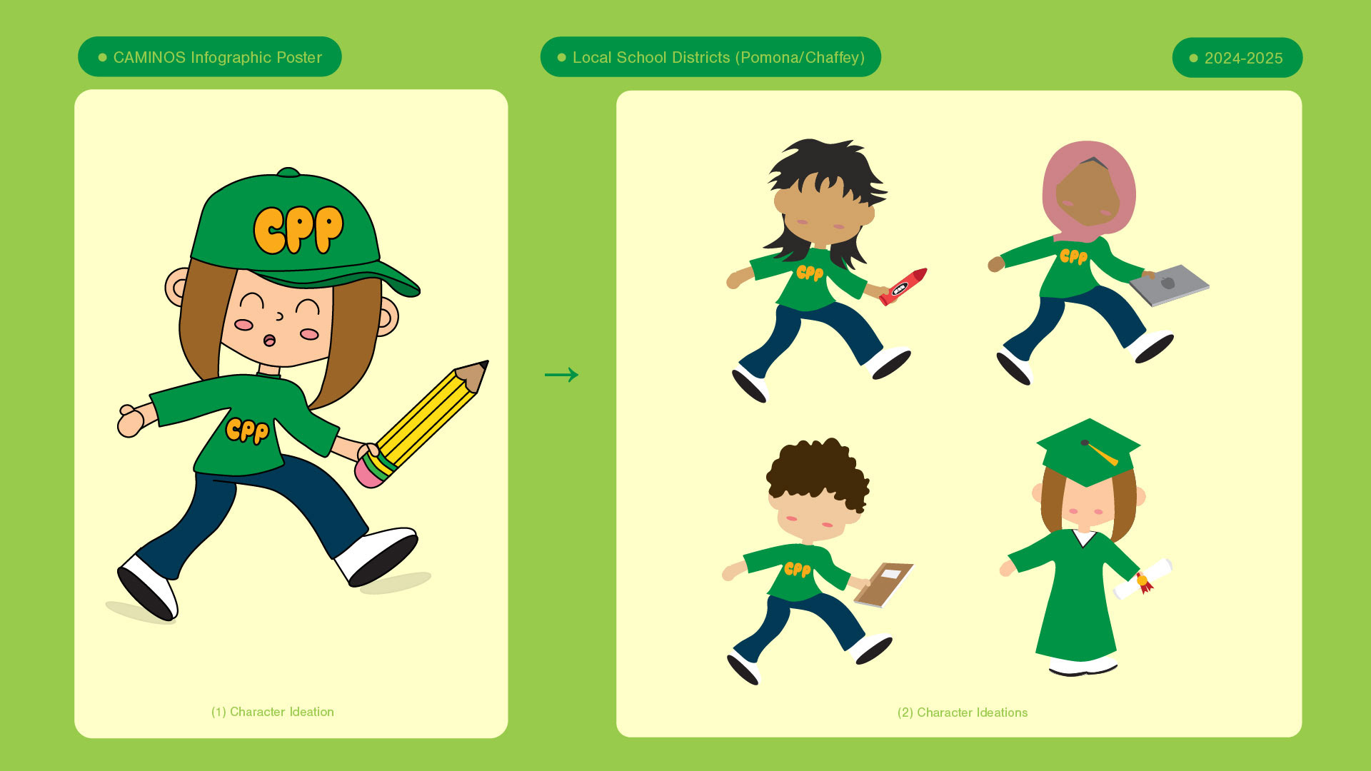 I contributed graphic design support to Caminos, a mission-driven initiative empowering Hispanic families on the path to higher education. I translated Cal Poly Pomona’s identity into approachable, youth-centered design that resonated with Gen Z and Gen Alpha, helping broaden campus visibility and generate enthusiasm for attending the university. I delivered brand-consistent print and web materials, along with original merchandise for community outreach events at local schools and on-campus events.